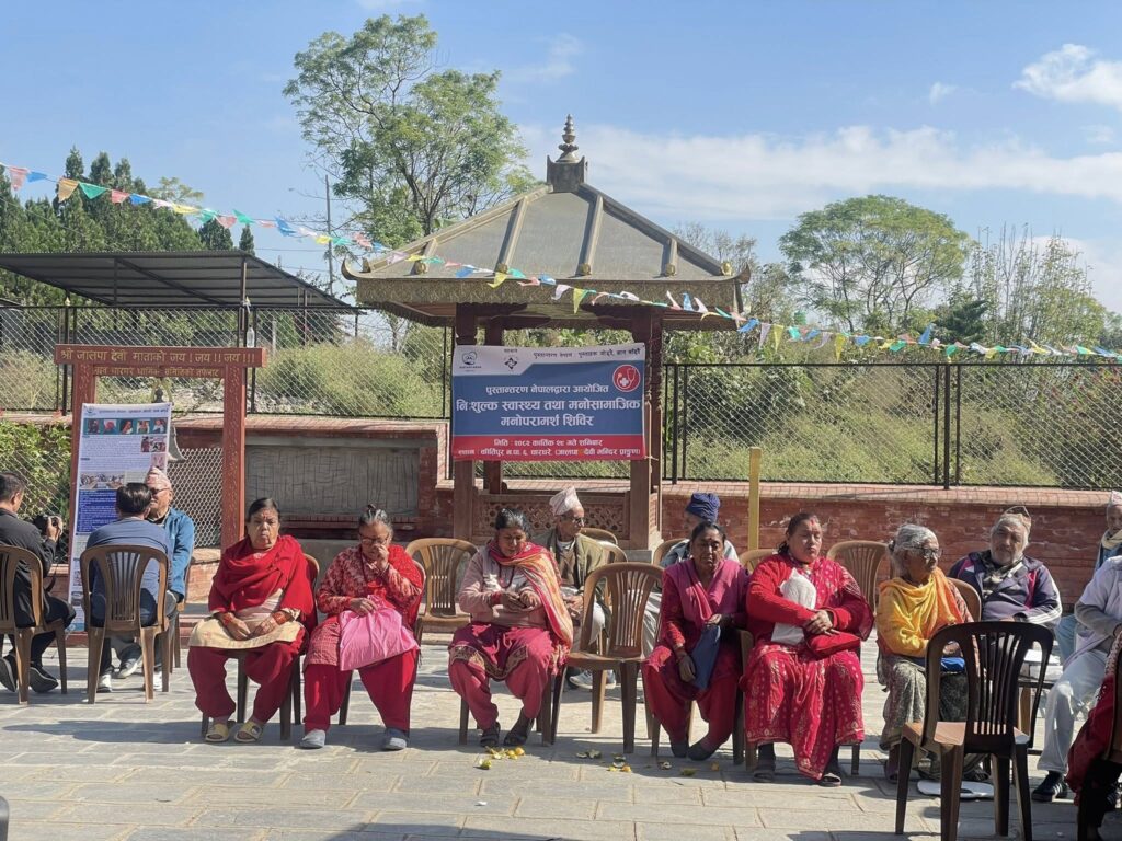 The camp was organized in the Chaughare area of Kirtipur Municipality, Ward No. 6, where doctors and certified counselors provided health check-ups and psychosocial counseling to elderly participants.